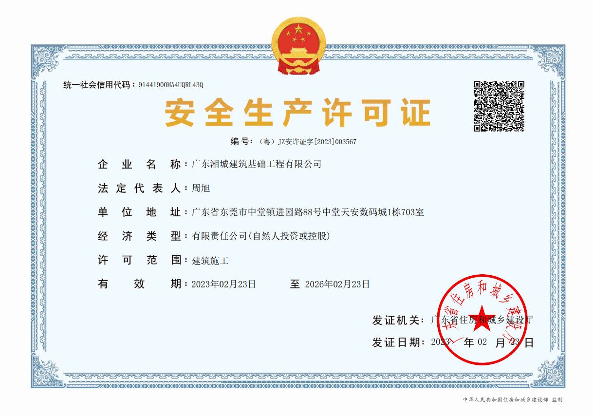 廣東湘城建筑基礎工程有限公司,成立于2016年,注冊資金4888萬元,持有地基基礎工程專業(yè)承包壹級資質,具有安全生產許可證。可承接各種基礎類施工,包括各類樁基礎、基坑支護、邊坡支護、地基強夯處理等施工業(yè)務。公司為地基與基礎工程專業(yè)承包、工程施工、技術咨詢、技術開發(fā)、技術服務、信息咨詢實體型企業(yè)。